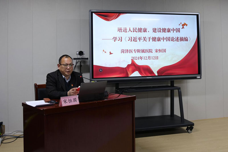 為深入貫徹落實黨的二十屆三中全會精神,引導全體黨員系統(tǒng)學習領會習近平總書記關于健康中國建設的重要論述,把理論學習和實際工作有機融合,促進理論與實踐的有機融合。12月12日下午,黨委書記宋恒國以《增進人民健康,建設健康中國》為題,講授了一堂主題鮮明、內(nèi)涵豐富的專題黨課,院長王克志,黨政班子成員及黨總支、黨支部書記,黨外人士代表參加了學習。