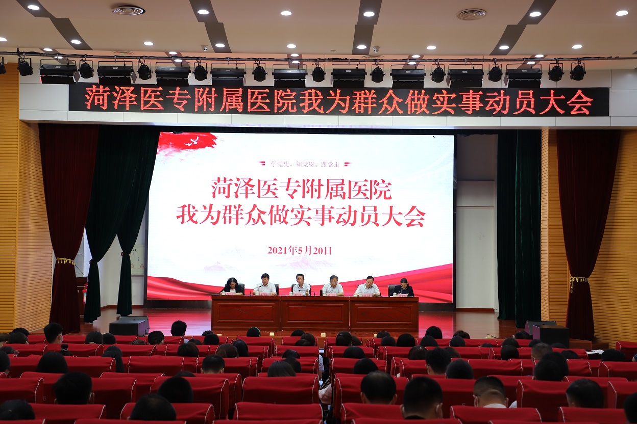 根據(jù)山東省衛(wèi)健委黨組、學校黨委關于黨史學習教育的有關要求,結合醫(yī)院工作實際,5月20日下午,菏澤醫(yī)專附屬醫(yī)院召開“我為群眾做實事”動員大會。醫(yī)院黨委書記劉心臣,黨委副書記、院長苗祥玉等領導班子出席會議,醫(yī)院全體非值班人員參加會議。