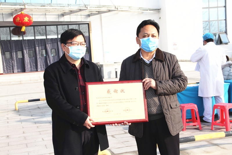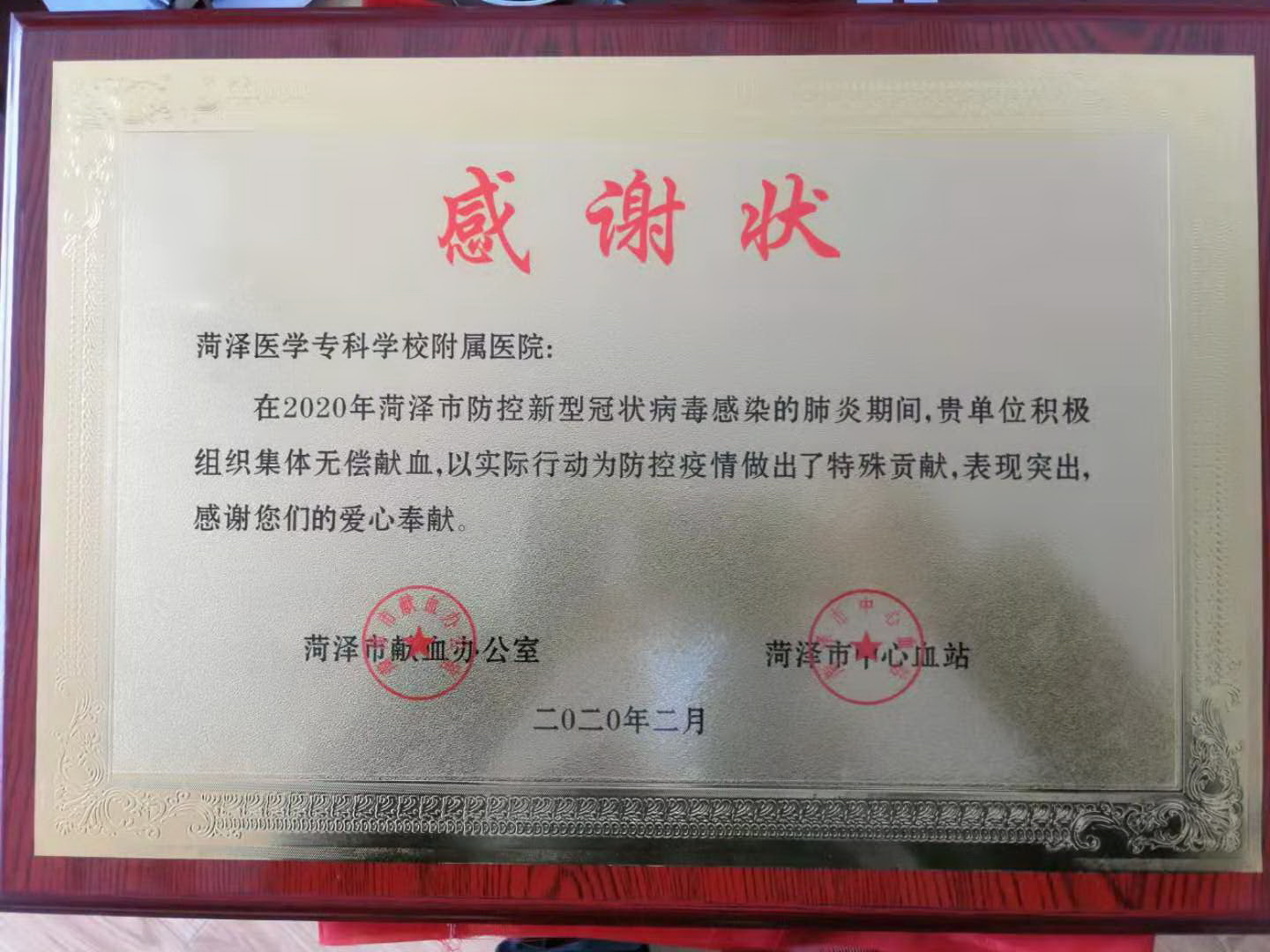 醫(yī)院黨總支副書記王煒振代表醫(yī)院接受了市中心血站頒發(fā)的感謝狀。
