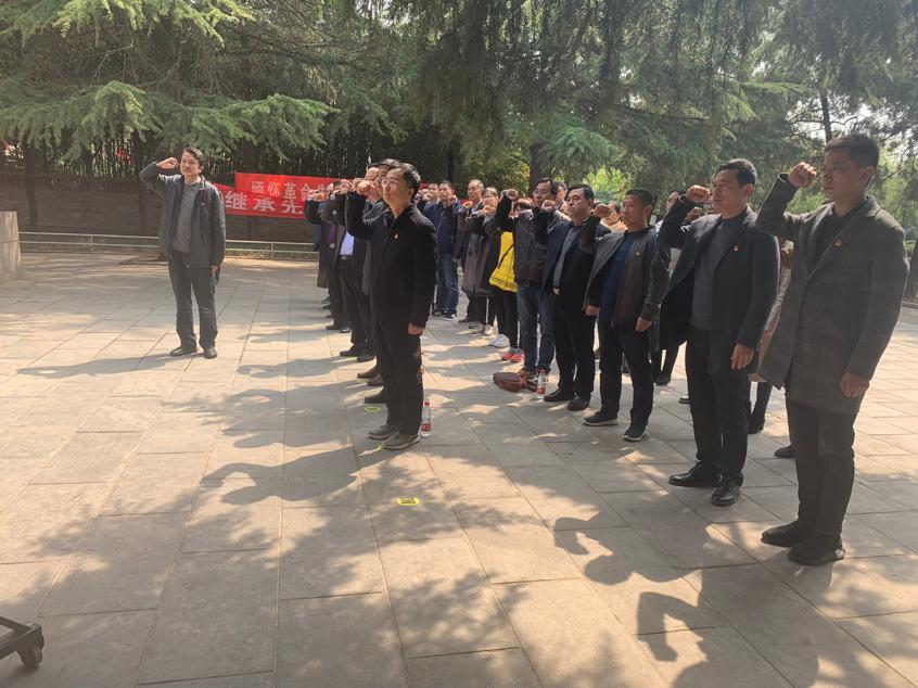 大約上午十點到達魯西南戰(zhàn)役紀念館。菏澤醫(yī)專附屬醫(yī)院全體黨員,跟著景區(qū)講解員參觀山前廣場、劉鄧雕塑(魯西南戰(zhàn)役指揮者劉伯承鄧小平雕塑),并在劉鄧雕塑前合影留念。隨后在公墓現(xiàn)場教學并舉行緬懷烈士儀式,向英勇犧牲的戰(zhàn)士們敬獻花籃,三鞠躬默哀,并且由黨總支書記劉心臣帶領重溫入黨誓言。