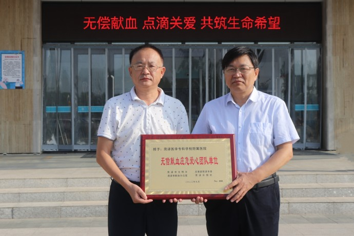 “組織到位!措施得力!動(dòng)員有力!圓滿成功!”市中心血站副站長張西雪高度評價(jià)了本次無償獻(xiàn)血活動(dòng),授予菏澤醫(yī)專附屬醫(yī)院“無償獻(xiàn)血應(yīng)急愛心團(tuán)隊(duì)單位”牌匾。醫(yī)院黨委副書記王煒振代表醫(yī)院參加授牌。