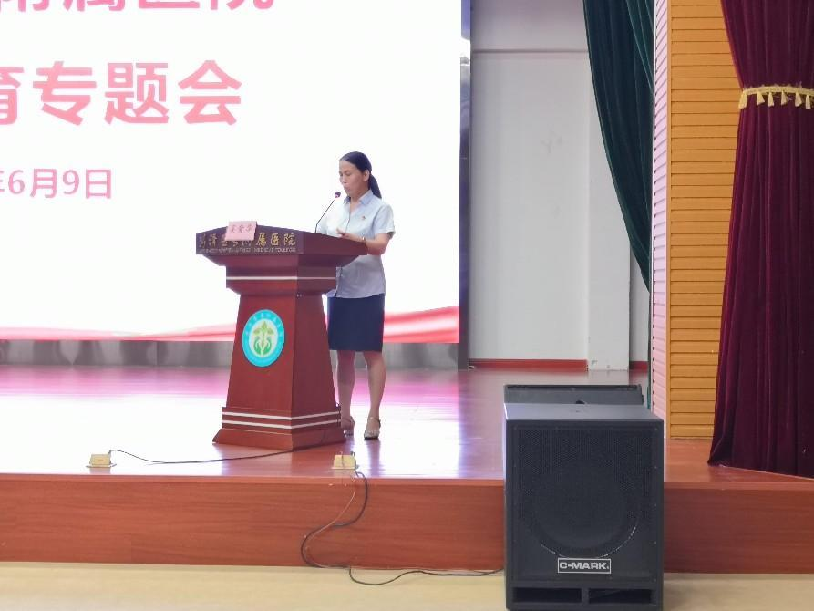 為深入推進我院黨風(fēng)廉政建設(shè)和反腐敗工作,增強廣大黨員干部的廉政意識,筑牢拒腐防變的思想防線,6月9日下午,菏澤醫(yī)學(xué)??聘綄籴t(yī)院召開了廉政教育專題會,特邀請市委第一巡查組綜合科科長、市廉政教育宣講團成員張磊主任來院進行專題宣講,院黨政領(lǐng)導(dǎo)、中層干部、全體黨員以及行政科室工作人員等200余人聽取了宣講報告,此次會議由紀委書記吳愛華主持。