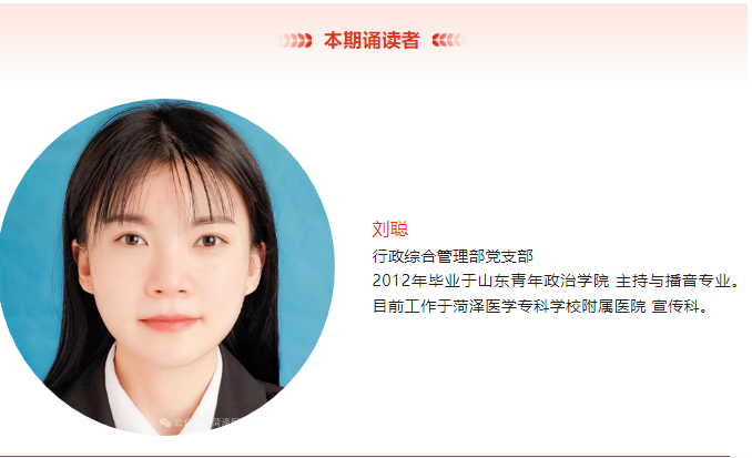為深入學(xué)習(xí)貫徹新修訂的《中國共產(chǎn)黨紀(jì)律處分條例》,進一步營造“學(xué)紀(jì)、知紀(jì)、明紀(jì)、守紀(jì)”的濃厚氛圍,推動廣大黨員干部原原本本學(xué),把紀(jì)律規(guī)矩刻印在心。醫(yī)院黨委決定開展黨紀(jì)學(xué)習(xí)教育有聲誦讀活動,由各黨支部對《中國共產(chǎn)黨紀(jì)律處分條例》進行原文誦讀,定期推送章節(jié)音頻,引導(dǎo)廣大黨員干部對照《條例》各項規(guī)定檢視問題和不足,用黨規(guī)黨紀(jì)校正思想和行動。