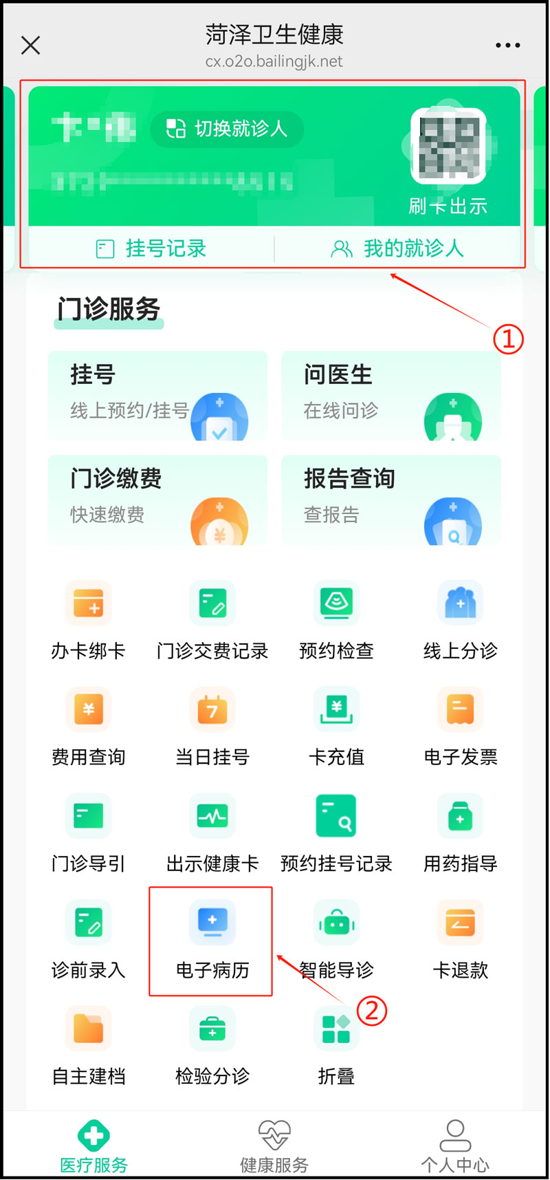 ②點擊左下角“醫(yī)療服務(wù)”,進入操作頁面
