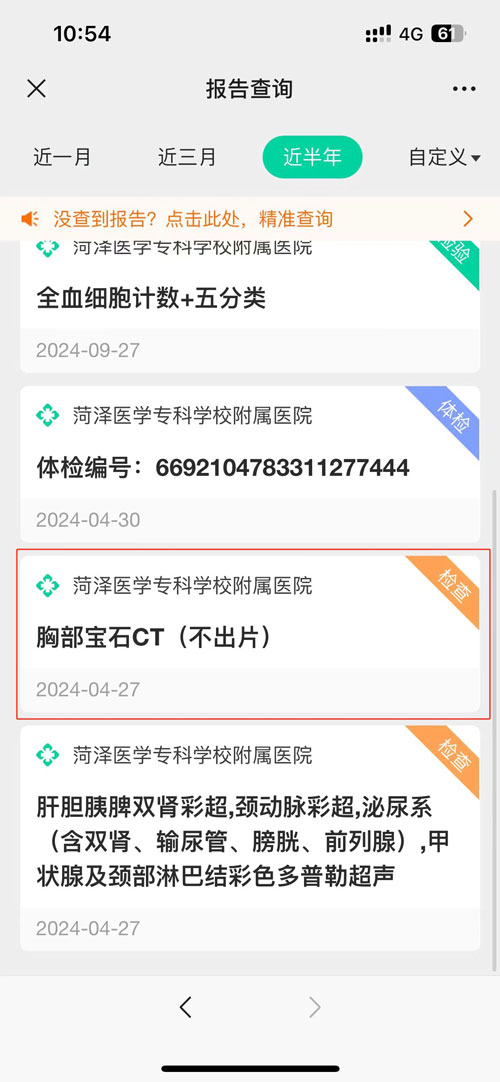 第四步:選擇要查看的檢查項(xiàng)目“胸部寶石CT”