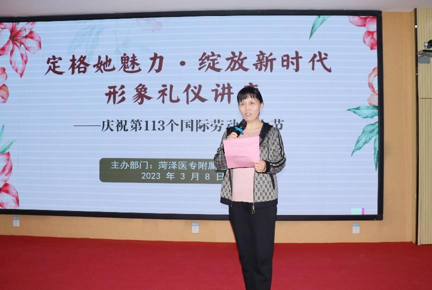 人間最美三月天,春花爛漫展新顏。為慶祝第113個“三八”國際婦女節(jié),進一步提高女職工文明禮儀修養(yǎng),塑造專業(yè)的職業(yè)形象和優(yōu)雅的女性形象,展現(xiàn)新時代女性風(fēng)采。3月8日下午,菏澤醫(yī)專附屬醫(yī)院工會舉辦“定格她魅力·綻放新時代”形象禮儀講座,特邀菏澤市禮儀文化研究會會長、國家高級禮儀培訓(xùn)師韓英授課。醫(yī)院工會主席吳愛華出席了會議,來自臨床、醫(yī)技、護養(yǎng)中心、行政科室的80余名女職工參加了本次講座。