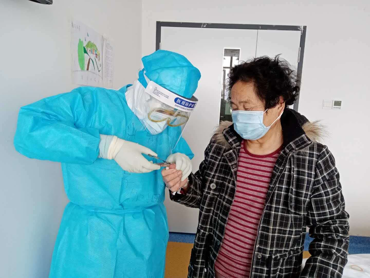 在社區(qū)采集核酸期間,尊老愛(ài)幼,親自走到行動(dòng)不便的老人跟前;哄不配合的小朋友張口;向社區(qū)干部宣傳防護(hù)知識(shí),培訓(xùn)六步洗手法、穿脫防護(hù)服的操作流程。