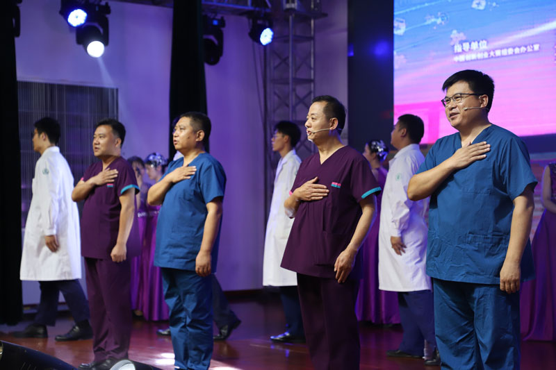 本次晚會共有“筑醫(yī)魂 譜寫生命華章”“醫(yī)師夢 勇?lián)】凳姑薄罢闺p翼 鑄就時代新功”三個篇章。在第二篇章開篇,醫(yī)院為獲得醫(yī)療工作“特別貢獻獎”的13位專家醫(yī)師舉行了頒獎儀式并展播了專家們優(yōu)秀的工作履歷、杰出的醫(yī)療成就及為附院發(fā)展作出的卓越貢獻,以前輩醫(yī)師先進事跡示范引領(lǐng),激勵全院醫(yī)務(wù)人員繼續(xù)弘揚和踐行崇高的職業(yè)精神,黨委書記宋恒國、院長王克志、黨委副書記王煒振上臺為獲獎專家頒發(fā)了紀(jì)念獎杯。儀式最后,專家醫(yī)師們與臨床科室代表共同演唱了《沒有共產(chǎn)黨就沒有新中國》,用嘹亮的歌聲抒發(fā)了醫(yī)務(wù)人員對黨和祖國人民的熱愛祝福,彰顯了護佑人民健康的醫(yī)者擔(dān)當(dāng)。