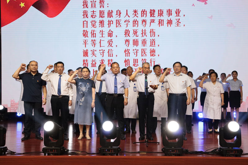 晚會最后,由王克志院長領(lǐng)誓,帶領(lǐng)全體醫(yī)師重溫中國醫(yī)師宣言,“我宣誓,我志愿獻身人類的健康事業(yè),自覺維護醫(yī)學(xué)的尊嚴和神圣.....”那一句句鏗鏘有力的誓言是全體醫(yī)務(wù)人員的心聲,那一句句飽含深情的話語是白衣戰(zhàn)士們最真情的表達。