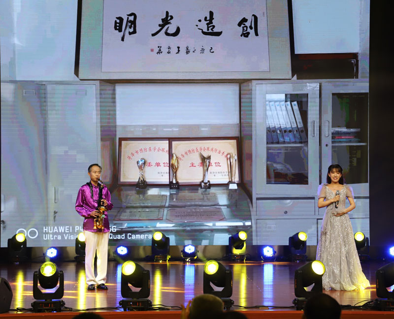 眼科楊朝忠教授使用自己改造的雅馬哈電薩克斯,與劉文婷為現(xiàn)場觀眾共同帶來了兼具創(chuàng)意與藝術(shù)性的樂器演唱《眼科醫(yī)生與祈奉光明》