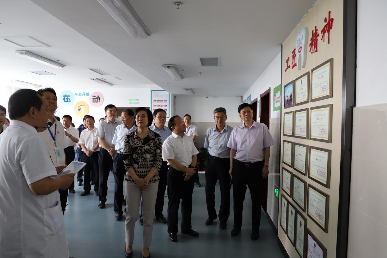 襲燕主任一行先后實地察看了我院門診樓、口腔科、眼科、護(hù)養(yǎng)中心老年人活動中心、自理區(qū)樣板間、營養(yǎng)餐廳等。襲燕主任對我院的新院區(qū)建設(shè)、科室設(shè)置、醫(yī)養(yǎng)結(jié)合工作成果給予充分肯定,認(rèn)為菏澤醫(yī)專附屬醫(yī)院在資金投入、配套設(shè)施、隊伍建設(shè)、運行機制、服務(wù)管理等方面有許多經(jīng)驗值得借鑒和推廣。