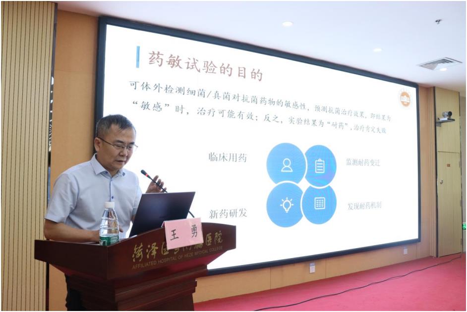 山東第一醫(yī)科大學(xué)附屬省立醫(yī)院檢驗(yàn)部副主任、山東省醫(yī)學(xué)會(huì)微生物與免疫學(xué)分會(huì)主任委員王勇教授講解了《藥敏試驗(yàn)的規(guī)范化及報(bào)告解讀》。
