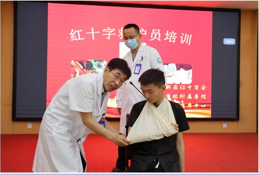 7月3日,菏澤醫(yī)專附屬醫(yī)院舉行紅十字救護(hù)員培訓(xùn)班。菏澤醫(yī)專附屬醫(yī)院急診醫(yī)學(xué)科團(tuán)隊(duì)為魯西新區(qū)各鎮(zhèn)街的120余名醫(yī)務(wù)人講解了心肺復(fù)蘇術(shù)(CPR)+自動(dòng)體外除顫儀(AED)使用、創(chuàng)傷急救基本技術(shù)(止血、包扎、固定、搬運(yùn))、氣道異物處置(海姆立克法)、常見急癥和意外傷害的應(yīng)對(duì)處理。