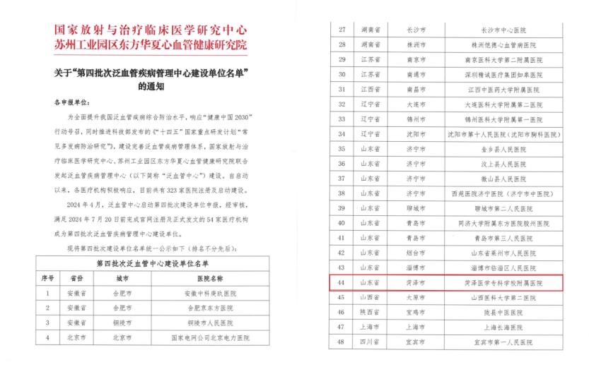 8月15—18日,第六屆“儒道心學(xué)”國際心血管病學(xué)會議(CTCC2024)在合肥以線下形式舉辦。會議期間,對全國“第四批次泛血管中心建設(shè)單位”進(jìn)行授牌,菏澤醫(yī)專附屬醫(yī)院位列其中。