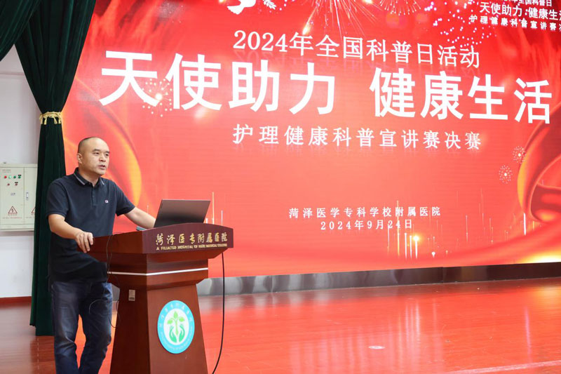 9月24日,菏澤醫(yī)專附屬醫(yī)院舉辦了以“提升全民科學素質(zhì),助力科技自立自強——天使助力 健康生活”為主題的護理健康科普宣講賽決賽。醫(yī)院黨委書記宋恒國參加活動并講話。