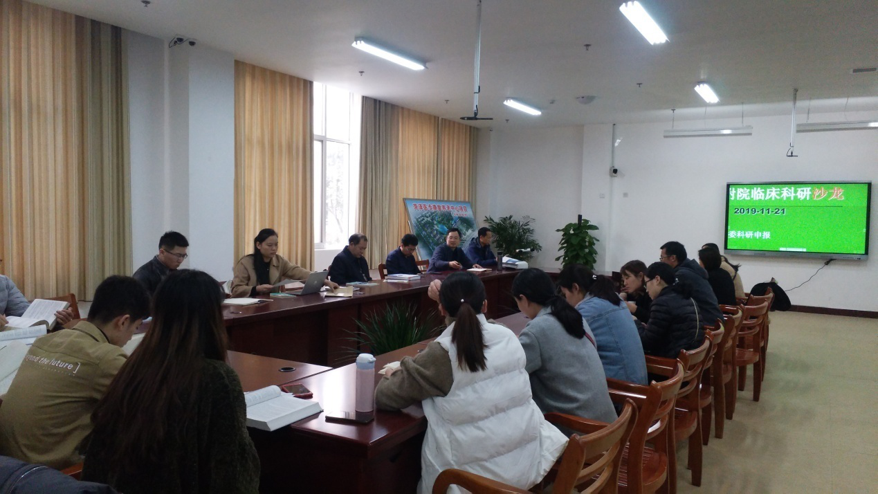 11月21日,我院在科教科肖善文主任的主持下召開了2019年科研工作座談會,來自我院各科室的科研骨干以及科研小組的同學共計20余人參加了此次科研工作座談會。