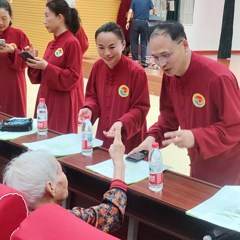 展演結(jié)束后,老師們針對(duì)不同人群的身體狀況和接受能力,展開了細(xì)致耐心地教學(xué)。對(duì)于醫(yī)院工作人員,教練們強(qiáng)調(diào)健身氣功對(duì)緩解工作壓力、提升身體素質(zhì)的積極作用,鼓勵(lì)大家在繁忙的工作之余,通過練習(xí)健身氣功保持良好的身心狀態(tài);對(duì)于護(hù)養(yǎng)中心的長(zhǎng)輩,老師們則放慢教學(xué)節(jié)奏,手把手地糾正動(dòng)作,耐心講解每個(gè)動(dòng)作的要領(lǐng)和注意事項(xiàng),確保老人們能夠安全、有效地進(jìn)行練習(xí)。