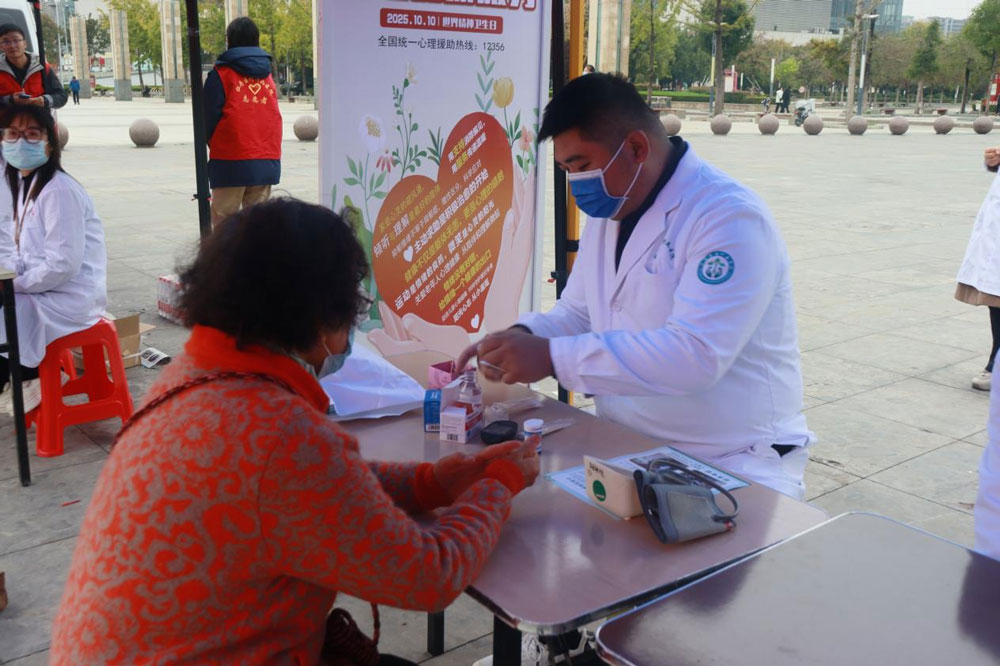 活動現(xiàn)場,醫(yī)務(wù)人員為群眾免費(fèi)測量血壓、血糖,通過設(shè)置專業(yè)咨詢臺、懸掛醒目宣傳橫幅、發(fā)放精心編制的健康教育資料等多種形式,針對當(dāng)前公眾普遍關(guān)注的常見心理問題早期識別、日常情緒科學(xué)調(diào)節(jié)、睡眠障礙有效改善等熱點(diǎn)話題,進(jìn)行了耐心、細(xì)致地解答。