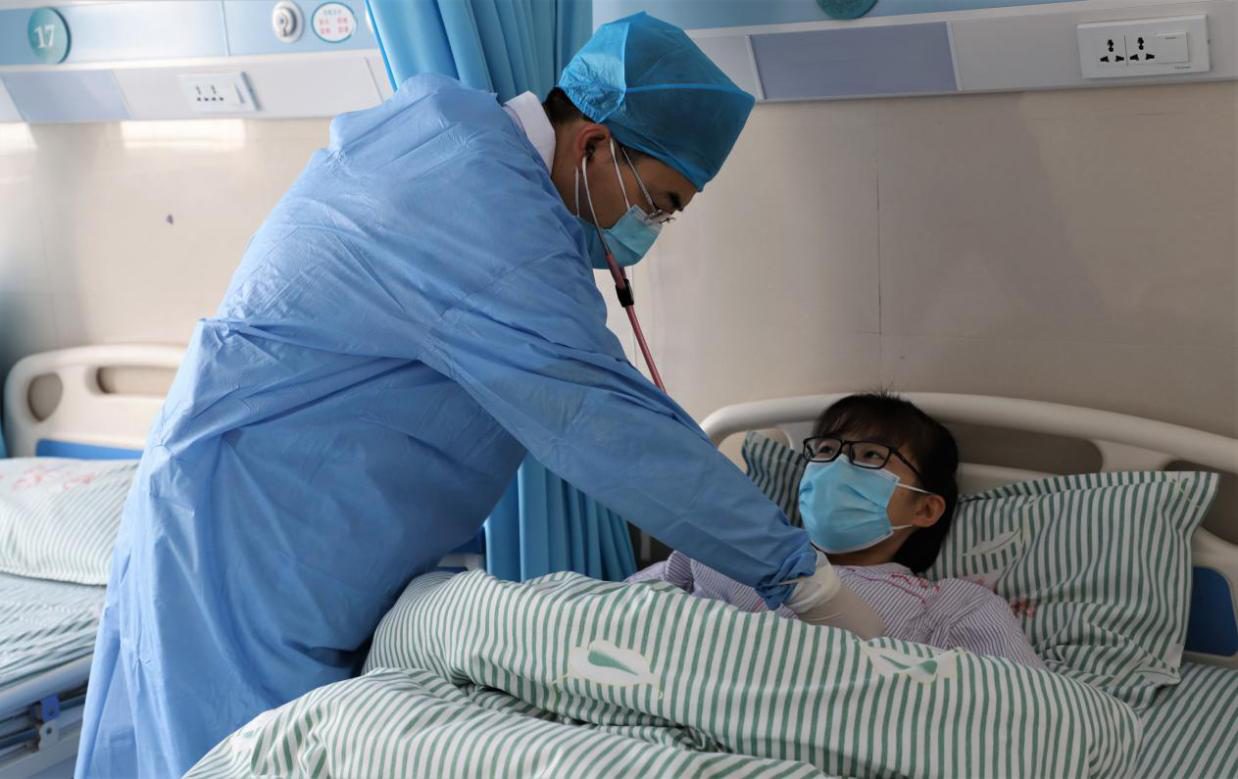 內(nèi)一科端木魯健醫(yī)生檢查病人。