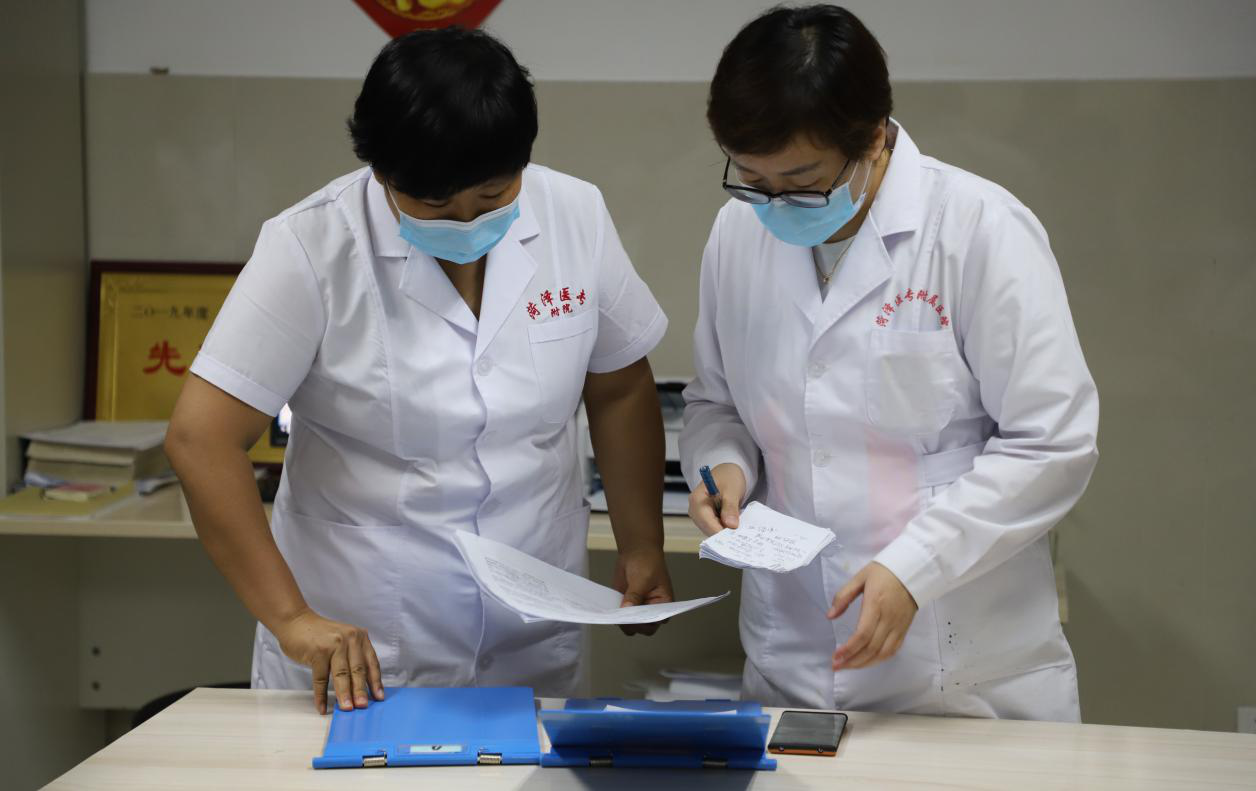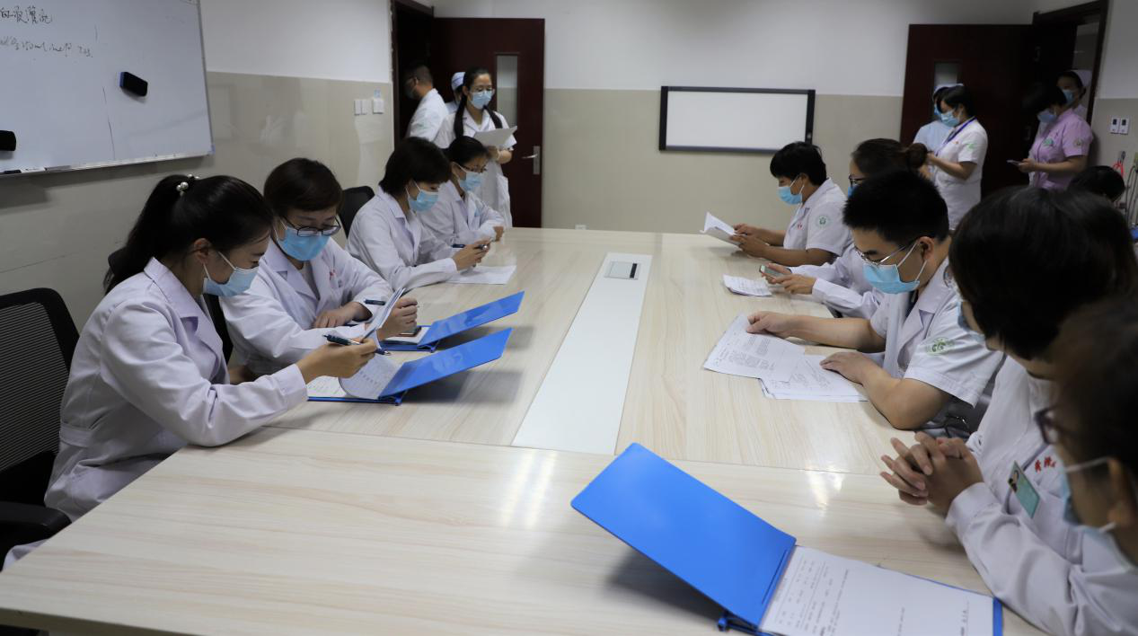 醫(yī)院感染暴發(fā)應(yīng)急處置專家組成員查看病例并進行會診。