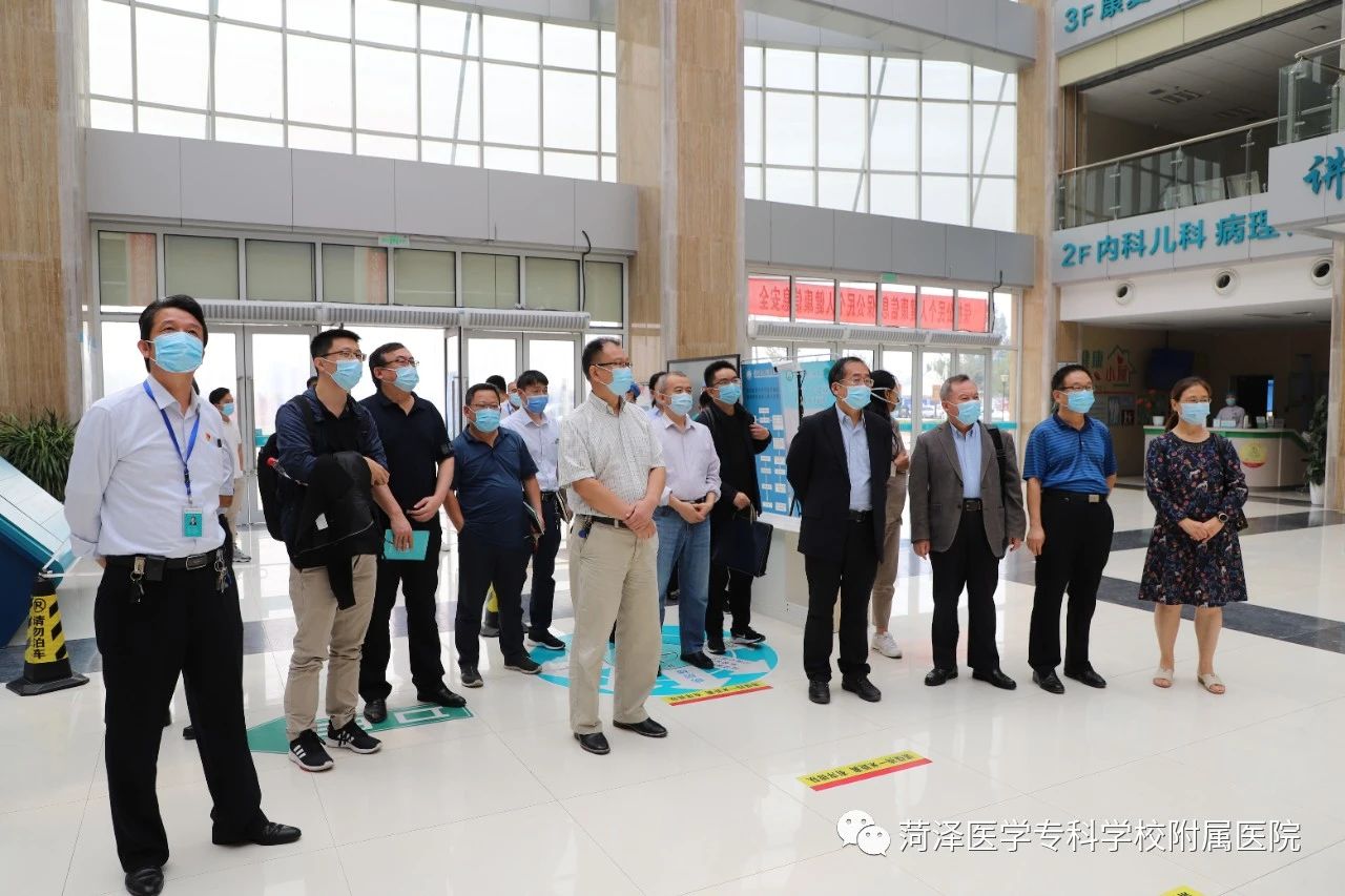 劉心臣同志代表醫(yī)院對專家們的到來表示熱烈的歡迎和衷心的感謝,向?qū)<覀冏隽撕喴ぷ鲄R報,對醫(yī)院基礎(chǔ)建設(shè)、醫(yī)療特色等方面做了簡單介紹。菏澤醫(yī)專附屬醫(yī)院是經(jīng)山東省衛(wèi)健委批準(zhǔn)成立的一所集醫(yī)療、養(yǎng)老、康復(fù)、教學(xué)、科研和培訓(xùn)為一體的公辦非營利性三級綜合醫(yī)院,占地325畝,總投資6.68億元,全院共有建筑28棟,建筑面積12.8萬平方米。醫(yī)院環(huán)境優(yōu)美,建筑密度15%,綠地率50%,四季有花,全年見綠,處處有景。醫(yī)院醫(yī)療設(shè)備先進(jìn),擁有超高端CT、磁共振、血管造影機等各種大型一流儀器設(shè)備,總價值2億余元。臨床、醫(yī)技科室齊全,醫(yī)療技術(shù)人員500余人,高級職稱人員73人,碩士以上學(xué)歷人員137人。專家團先后到門診大廳、放射科、檢驗科、康復(fù)大廳、眼科、口腔科實地參觀調(diào)研,與醫(yī)護(hù)人員深入交流,查看醫(yī)療設(shè)施設(shè)備,了解醫(yī)院基礎(chǔ)建設(shè)、學(xué)科發(fā)展、人才培養(yǎng)等工作情況。參觀過程中,專家們對菏澤醫(yī)專附屬醫(yī)院的發(fā)展給予了高度評價。