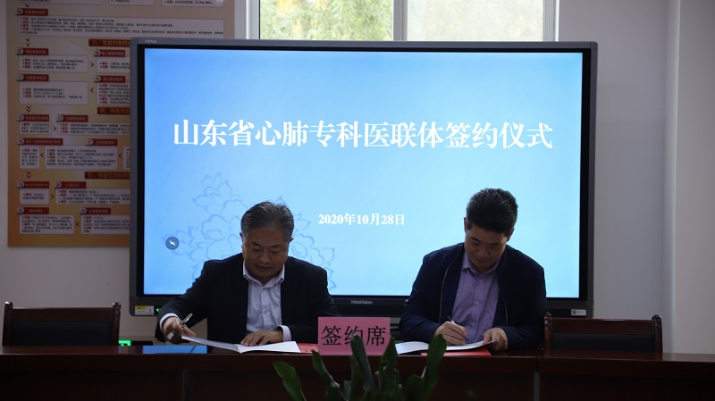 參觀結(jié)束后,省胸科醫(yī)院紀(jì)委書記苗繼生、菏澤醫(yī)專附屬醫(yī)院黨委副書記、院長苗祥玉進(jìn)行了山東省心肺專科醫(yī)聯(lián)體協(xié)議簽約。