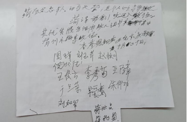 今天我們要跟大家分享的是一位年過(guò)九旬爺爺?shù)耐陡濉?br />        李爺爺今年92歲,是菏澤市供銷社離休人員,在護(hù)養(yǎng)中心介助區(qū)居住已一年八個(gè)月的時(shí)間。李爺爺交給我們的紙上寫著:“菏醫(yī)是老年人的天堂,老年人的驕傲,菏澤首創(chuàng),歡迎入住。”后面還附有同樣住在介助區(qū)的長(zhǎng)輩們的簽名。李爺爺告訴我們,他年紀(jì)大了,不會(huì)用現(xiàn)在的電腦網(wǎng)絡(luò),只能通過(guò)這種最原始的方式表達(dá)自己對(duì)工作人員辛勤付出的感謝。在李爺爺?shù)墓└逍爬?,我們雖然不能完全看懂李爺爺寫的每一個(gè)字,但在一筆一劃的字跡里我們看懂了爺爺?shù)恼\(chéng)意和心情,看懂了他對(duì)我們護(hù)理人員工作的認(rèn)可,更看懂了他對(duì)菏澤醫(yī)學(xué)??茖W(xué)校附屬醫(yī)院護(hù)養(yǎng)中心醫(yī)養(yǎng)結(jié)合工作和實(shí)踐的高度肯定。