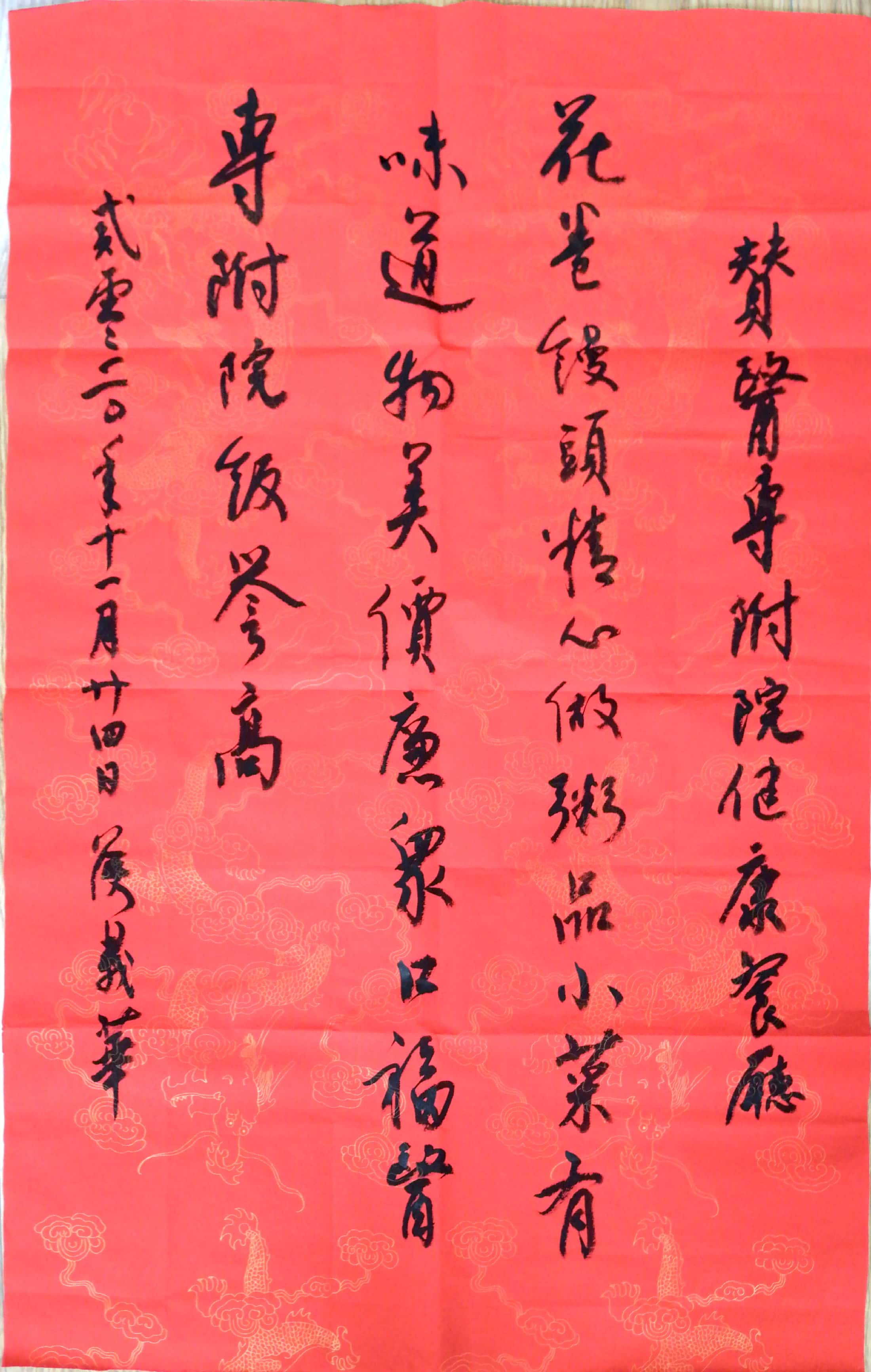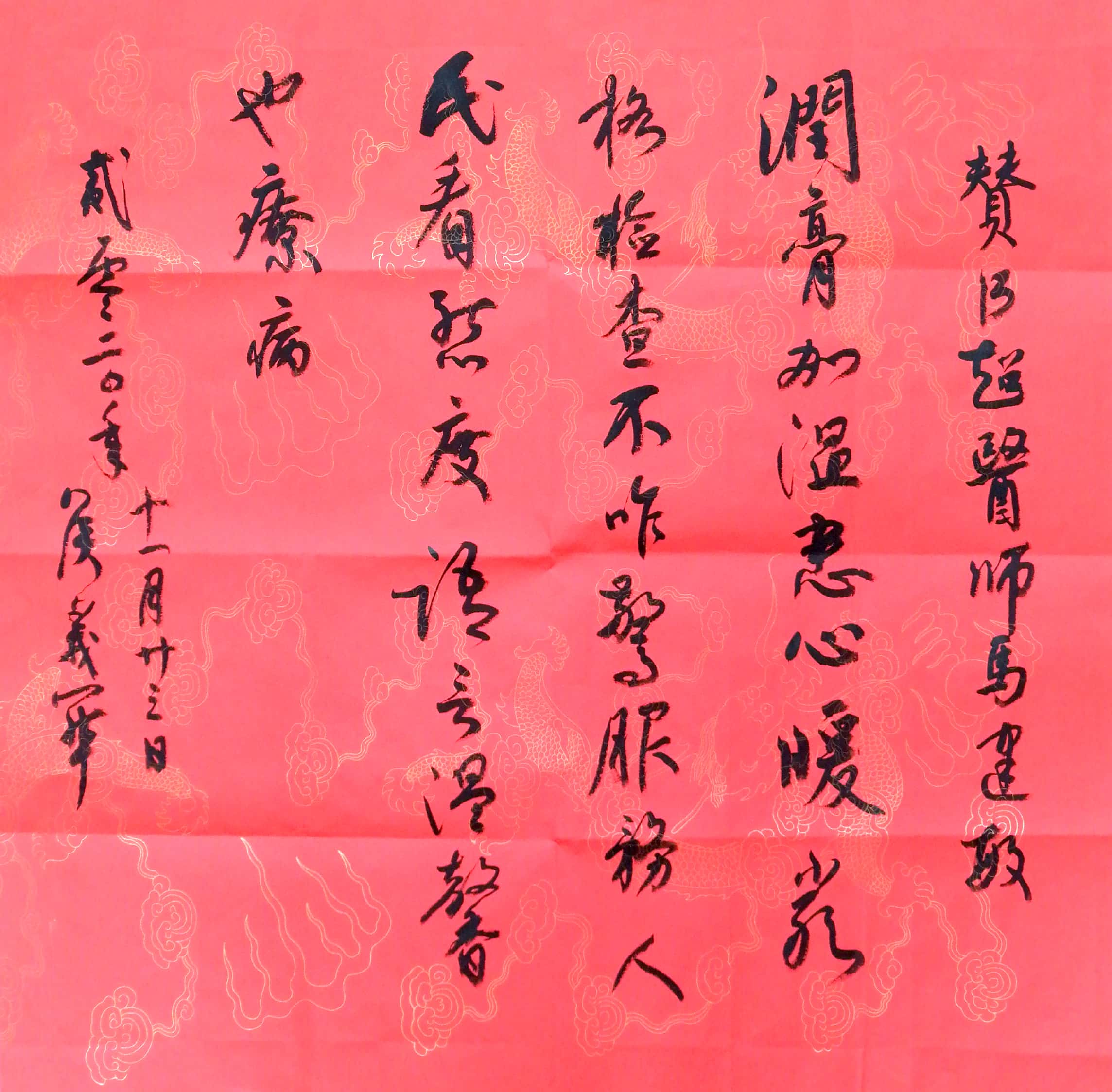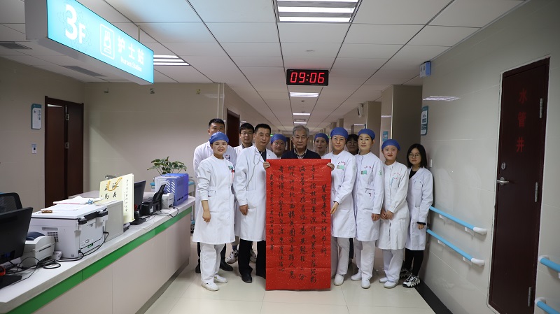 “多年腦梗頭暈沉,神內(nèi)慕名薦苑斌,親口答應(yīng)給看好,一番安慰輕三分,附院神內(nèi)北三西,精英團(tuán)隊(duì)無(wú)弱人,患者陪護(hù)溫馨住,急治康復(fù)俱省心。”此詩(shī)是住院患者家屬為內(nèi)三科全體醫(yī)護(hù)人員而作。