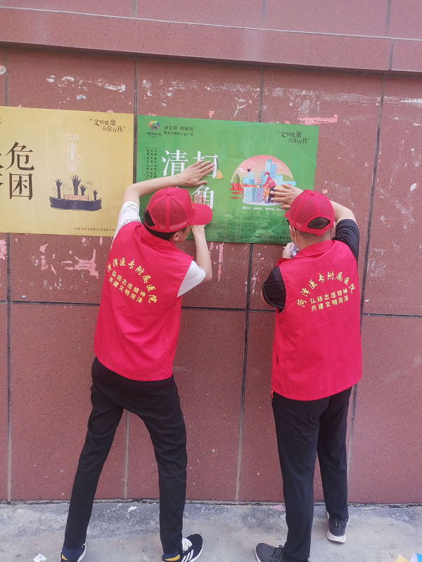 三是開展環(huán)境保護志愿服務活動。在開展創(chuàng)城宣傳的同時,志愿者們帶著夾子、鏟子等工具,對朱樓社區(qū)的衛(wèi)生、雜物進行集中清理,用實際行動踐行生態(tài)文明,切實增強了社區(qū)居民保護環(huán)境的意識和責任感,有力助推了創(chuàng)城工作。