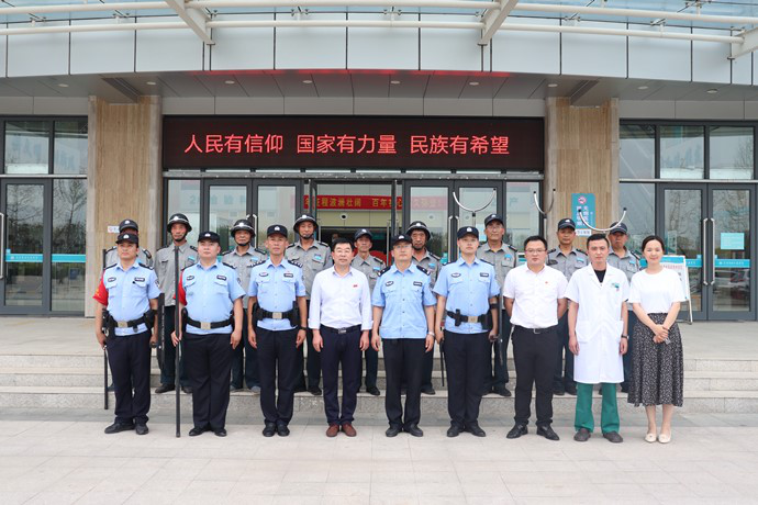 為進一步提高醫(yī)務人員面對暴力恐怖事件的防范意識,增強面對暴力恐怖事件的應急處理能力,維護正常醫(yī)療秩序,確保就醫(yī)患者、醫(yī)務人員人身安全和醫(yī)院財產(chǎn)安全,檢驗醫(yī)院安保應急預案,6月28日下午,菏澤醫(yī)專附屬醫(yī)院聯(lián)合菏澤市公安局開發(fā)區(qū)分局佃戶屯派出所,進行了一場反恐應急演練。菏澤醫(yī)專附屬醫(yī)院黨委副書記、院長苗祥玉,分管安全生產(chǎn)工作的院長助理陳劼,部分科室負責人和臨床醫(yī)護人員、保衛(wèi)科安保團隊以及佃戶屯派出所的民警同志參加了演練。