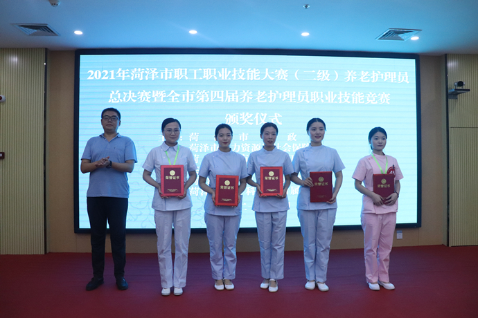 養(yǎng)老護(hù)理員職業(yè)技能競(jìng)賽是提升養(yǎng)老護(hù)理員社會(huì)榮譽(yù)的重要舉措,競(jìng)賽組委會(huì)對(duì)獲得前6名的選手進(jìn)行通報(bào)表?yè)P(yáng),第一名按程序向市總工會(huì)推薦申報(bào)“菏澤市五一勞動(dòng)獎(jiǎng)?wù)隆?;?duì)獲得市總決賽前三名的青年選手(35周歲以下)由團(tuán)市委授予“菏澤市青年崗位能手”稱號(hào);前三名中的女選手由市婦聯(lián)授予“菏澤市巾幗建功標(biāo)兵”稱號(hào),前六名中的其余選手由三部門(mén)授予“菏澤市職工職業(yè)技能競(jìng)賽二級(jí)競(jìng)賽優(yōu)秀選手”稱號(hào)。