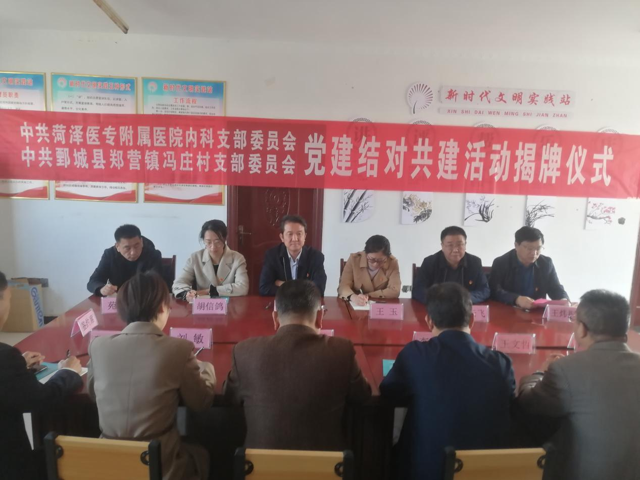 菏澤醫(yī)專附屬醫(yī)院內(nèi)科黨支部書(shū)記苑斌同志和馮莊村黨支部書(shū)記董銀山同志簽署了《黨支部結(jié)對(duì)共建協(xié)議書(shū)》。