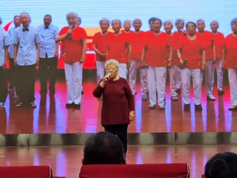 護(hù)養(yǎng)中心的長(zhǎng)輩們?cè)谶@次活動(dòng)中精心準(zhǔn)備了節(jié)目。首先,護(hù)養(yǎng)中心夕陽(yáng)紅合唱團(tuán)帶來的大合唱《大中國(guó)》、《中國(guó)人民志愿軍戰(zhàn)歌》,唱出了祖國(guó)河山的多姿多彩,展現(xiàn)了作為中國(guó)人的驕傲與自豪。接著,夕陽(yáng)紅合唱團(tuán)又帶來《我是一個(gè)兵》、《打靶歸來》 、《康定情歌》、《沙家浜選段》、《歌唱二郎山》等,一場(chǎng)接一場(chǎng)的精彩節(jié)目贏得了大家的掌聲和喝彩,有的老人情不自禁跟隨著音樂節(jié)奏打起拍子,有的豎起大拇指連聲夸贊說:“真好!真好!長(zhǎng)輩們個(gè)個(gè)精神飽滿、情緒激昂,充分展示了新時(shí)代老年人的精神風(fēng)貌。