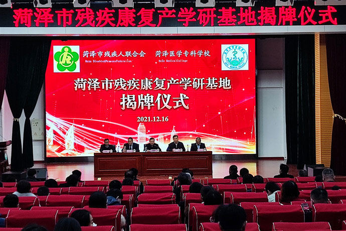 菏澤市殘疾康復(fù)產(chǎn)學(xué)研基地揭牌儀式在菏澤醫(yī)專附屬醫(yī)院舉行
