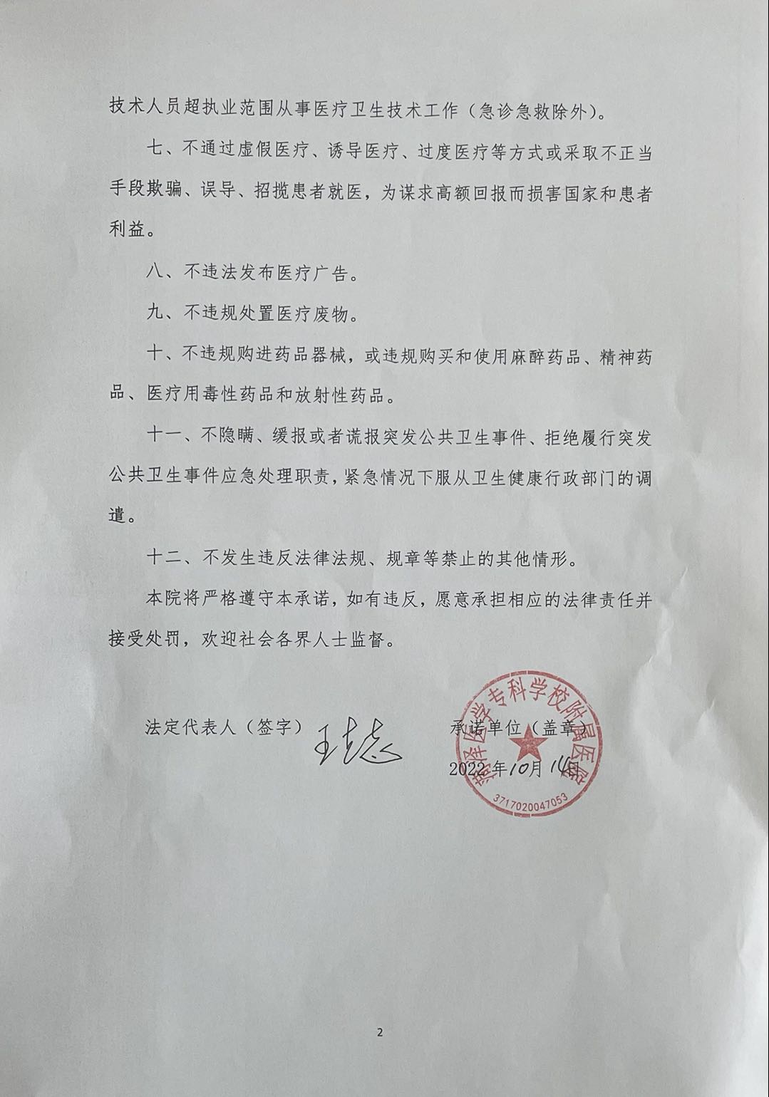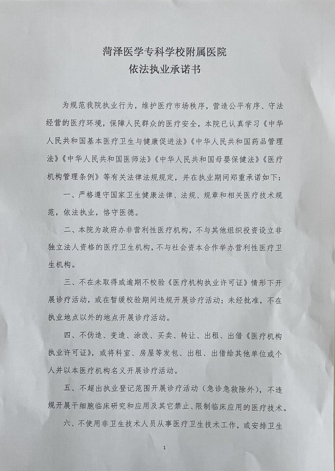菏澤醫(yī)專附屬醫(yī)院依法執(zhí)業(yè)承諾書