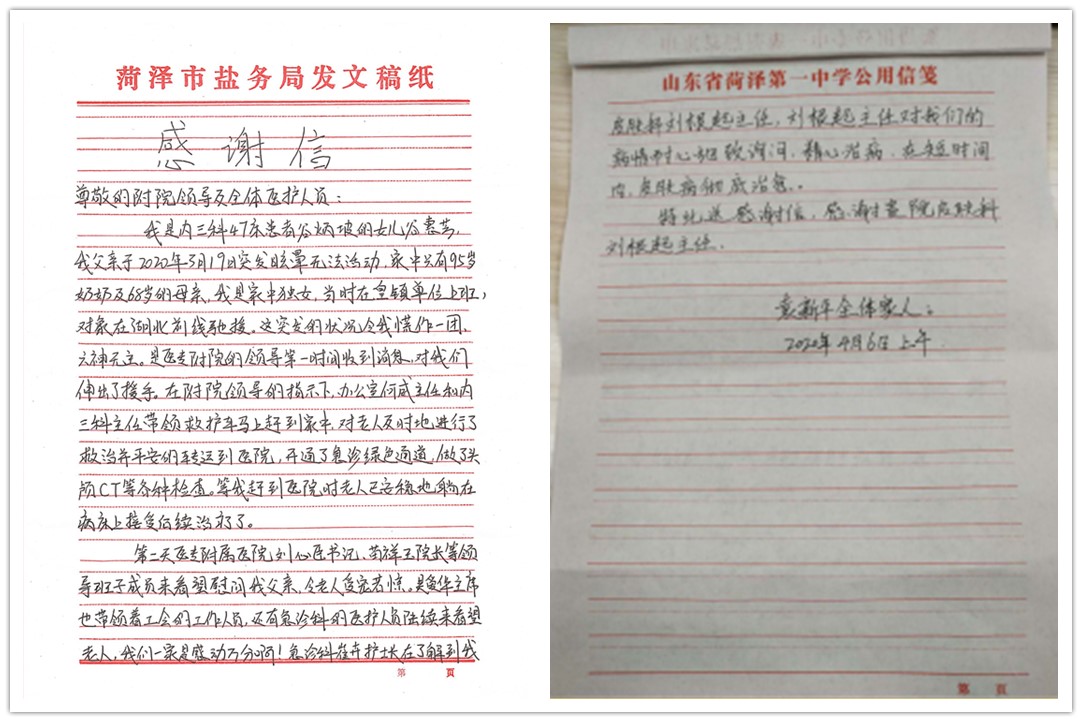 俗話說(shuō)得好,金杯銀杯不如患者的口碑。一面面小小的錦旗,不僅代表著患者家屬對(duì)醫(yī)護(hù)人員的感謝,也是對(duì)醫(yī)護(hù)人員付出心血和汗水的敬重。不忘醫(yī)者初心,牢記使命,用真心為患者服務(wù),用醫(yī)德仁術(shù)贏得患者的信任,是每一名菏醫(yī)人的追求。我們將不斷進(jìn)步,不斷努力,繼續(xù)為信賴(lài)菏澤醫(yī)專(zhuān)附屬醫(yī)院的患者們提供更好更優(yōu)質(zhì)的服務(wù)。