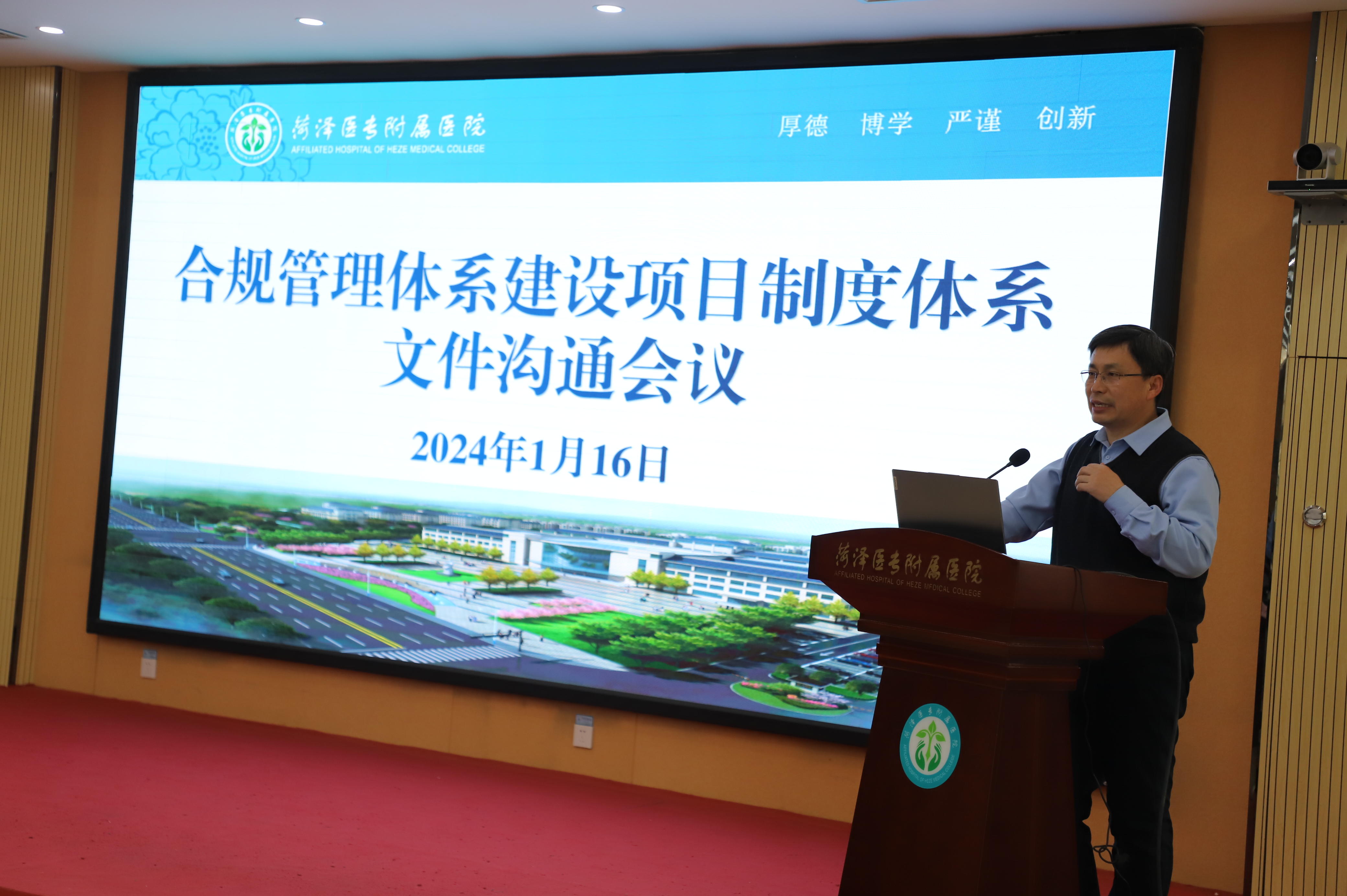 1月16日下午,菏澤醫(yī)專附屬醫(yī)院召開合規(guī)管理體系建設項目第二階段工作推進會議。會議由黨委副書記王煒振主持,黨委書記宋恒國出席會議并發(fā)表講話。合規(guī)管理領導小組成員、合規(guī)委員會全體成員、各科室合規(guī)專員、青島大學專家團隊成員參加會議。
