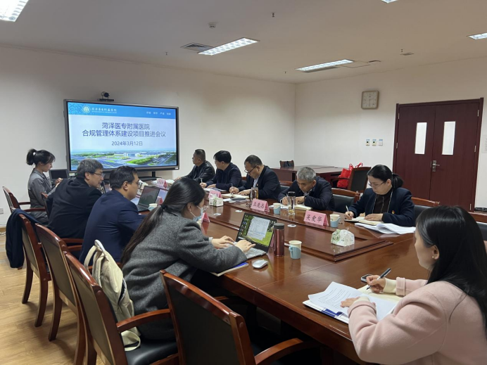 2024年3月12日,菏澤醫(yī)專附屬醫(yī)院在行政樓第一會(huì)議室召開合規(guī)管理體系建設(shè)項(xiàng)目推進(jìn)會(huì)議,醫(yī)院黨委書記宋恒國(guó)、院長(zhǎng)王克志、黨委副書記王煒振及其他合規(guī)領(lǐng)導(dǎo)小組成員出席會(huì)議,合規(guī)管理委員會(huì)全體成員、法治建設(shè)辦公室全體成員、合規(guī)管理體系建設(shè)項(xiàng)目團(tuán)隊(duì)部分成員參加會(huì)議。