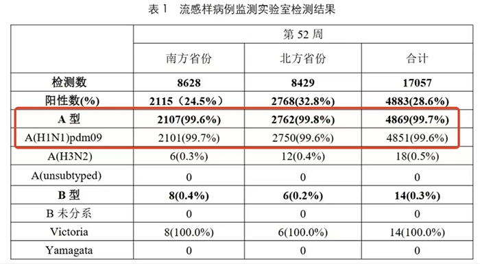 病毒以甲型H1N1流感為主