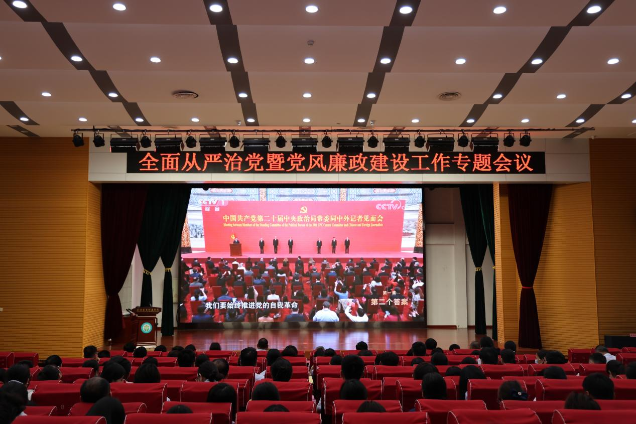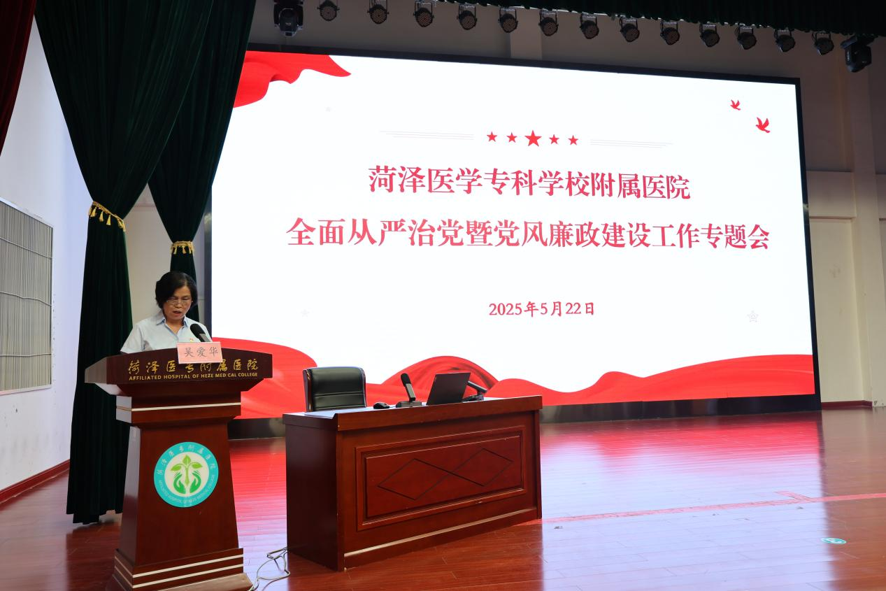 5月22日下午,醫(yī)院召開2025年全面從嚴治黨暨黨風廉政建設工作專題會議,全面部署新形勢下黨風廉政建設工作。醫(yī)院黨政領導班子成員、全體黨員及中層干部參加會議,會議由黨委副書記王煒振同志主持。