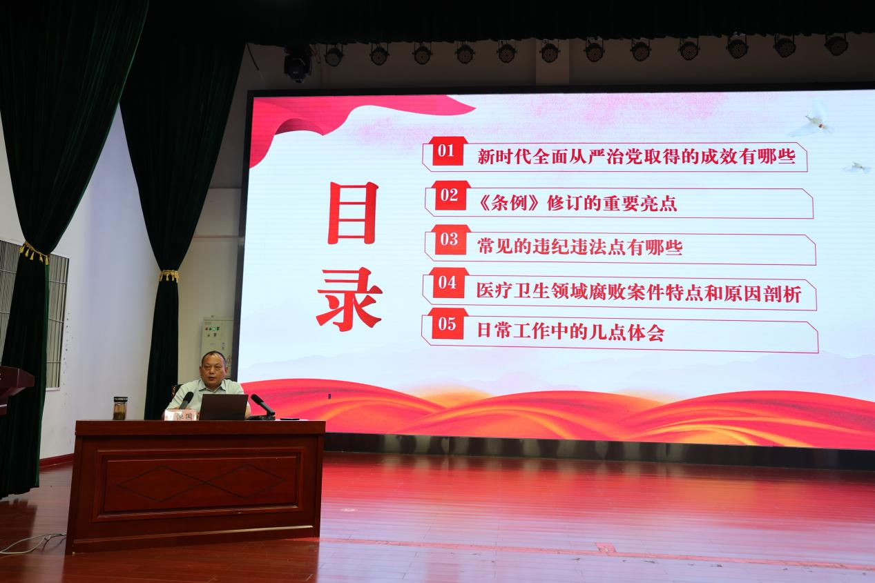 會上,黨委書記宋恒國以“揚清正廉潔之風,守醫(yī)者仁心之本”為題講授專題黨課。黨課立足醫(yī)療衛(wèi)生行業(yè)特點,從“制度優(yōu)勢、紀律紅線、警示案例、風險防控、實踐指引”五個維度展開論述,系統(tǒng)闡釋了全面從嚴治黨的理論內(nèi)涵,緊密聯(lián)系醫(yī)療工作實際,提出一系列指導意見。宋書記強調(diào),全體黨員干部必須牢記初心使命,始終繃緊紀律之弦,將廉潔行醫(yī)視為職業(yè)生命線。