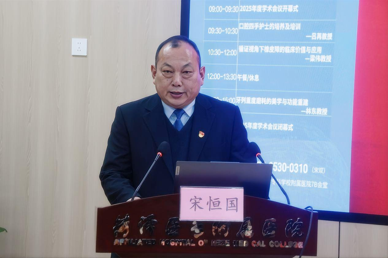 作為承辦方代表,菏澤醫(yī)專附屬醫(yī)院黨委書記宋恒國教授代表醫(yī)院致歡迎辭。他對(duì)各位領(lǐng)導(dǎo)、專家及同仁的到來表示熱烈歡迎,并強(qiáng)調(diào)了口腔健康教育在全民健康中的重要作用,希望以此次會(huì)議為契機(jī),進(jìn)一步推動(dòng)本地區(qū)口腔護(hù)理專業(yè)的規(guī)范化、同質(zhì)化發(fā)展。